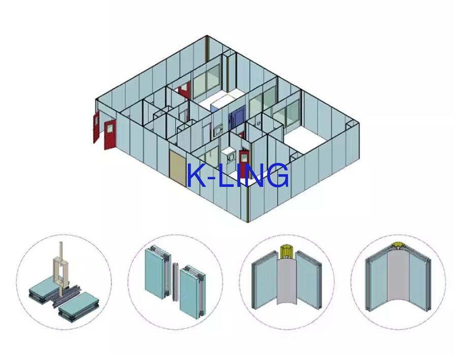 The K-Ling Modular Cleanroom (Model: KEL-LFB) is designed for environments demanding strict cleanliness standards, including ISO5 and ISO6 classifications. This industrial modular cleanroom is ideal for: